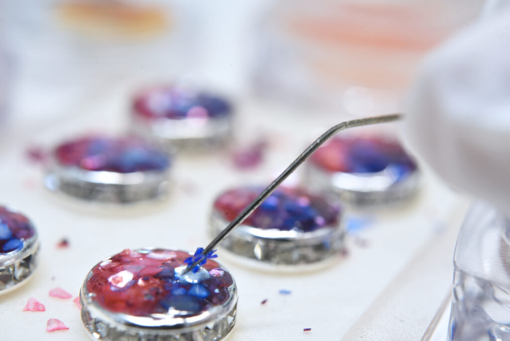 1つ1つの色を細かく調整しながら、レジンで何層にも固めて作っています